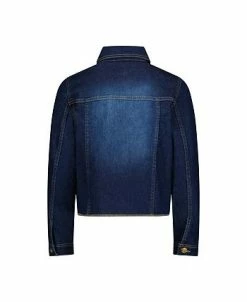 Steve Madden Girl’s Studded Distressed Dark Wash Denim Jacket, Kids