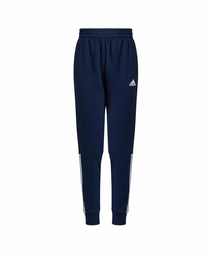 Total comfort. All adidas. These boys fleece joggers will keep him cozy and warm when the weather shifts. Contrast 3-Stripes give him an always classic look. A little dirt won’t hurt because they’re easy to wash.