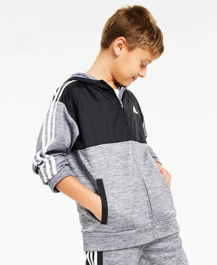 The melange mix sweatshirt from adidas features a comfy attached hood and classic logo detailing for cool, sporty style.