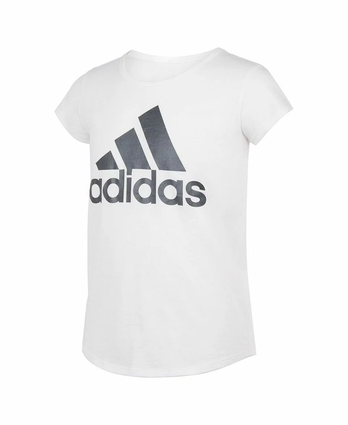 She sure can shine. This girl’s short sleeve tee brings shimmery style to her look with a pearlized adidas badge of sport logo on the front. A scoop neck and soft jersey fabric keep her comfortable no matter where she takes her dazzling personality next.