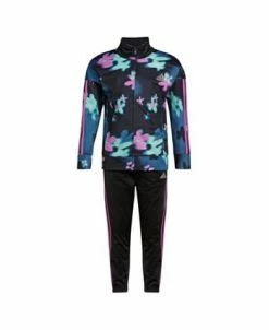 Two pieces, all adidas. This baby girl’s track set dresses her up in fresh sporty style. It’s made of smooth tricot fabric for an authentic look and feel.