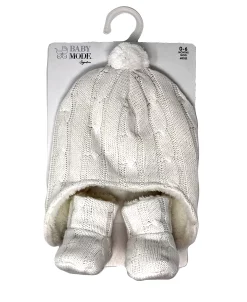 - Set includes cable knit cap and fleece lined booties