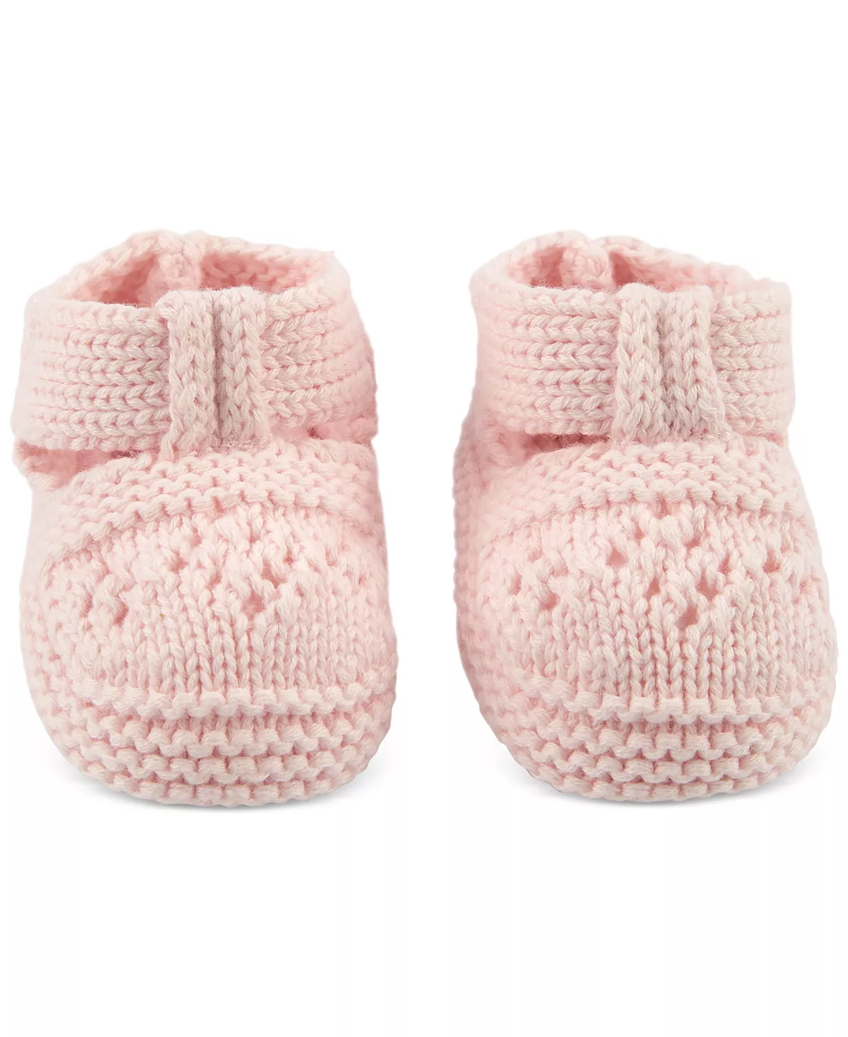 Keep her tiny toes cozy with the warm crocheted design of these Mary Jane-style booties from Carter’s.