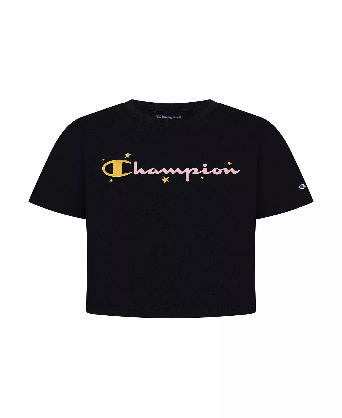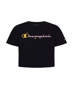 The perfect addition to her athletic wardrobe, with a soft-hand blend fabric that feels soft to the touch and Champion gold-tone foil C logo and star graphic, this boxy T-shirt will easily become a favorite.