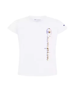 The perfect addition to her athletic wardrobe, with a soft-hand blend fabric that feels soft to the touch and Champion color block foil print graphic, this short sleeves T-shirt will easily become a favorite.