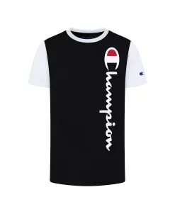 For the active boy, reach for the Champion vertical script color blocked short sleeve T-shirt. With trending details and a comfortable construction, this play and school-friendly T-shirt will become his go-to.