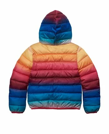 This warm rainbow gradient print jacket from Epic Threads can be packed into a fun coordinating graphic bag for easy storage and carrying.
