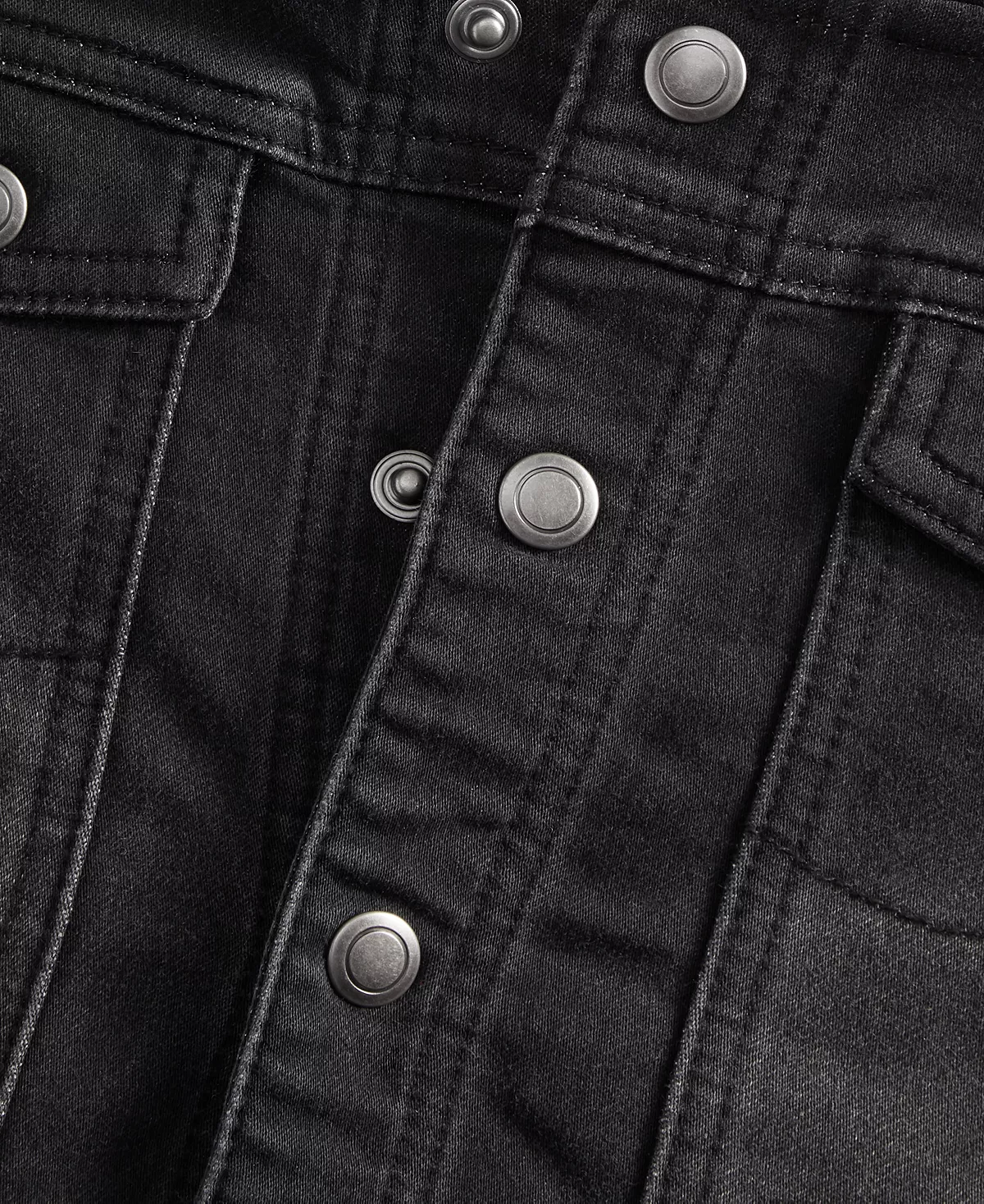 Styled with a soft denim body finished with a cozy knit hood and sleeves, this jacket from First Impressions keeps his look stylish and warm for cooler weather.