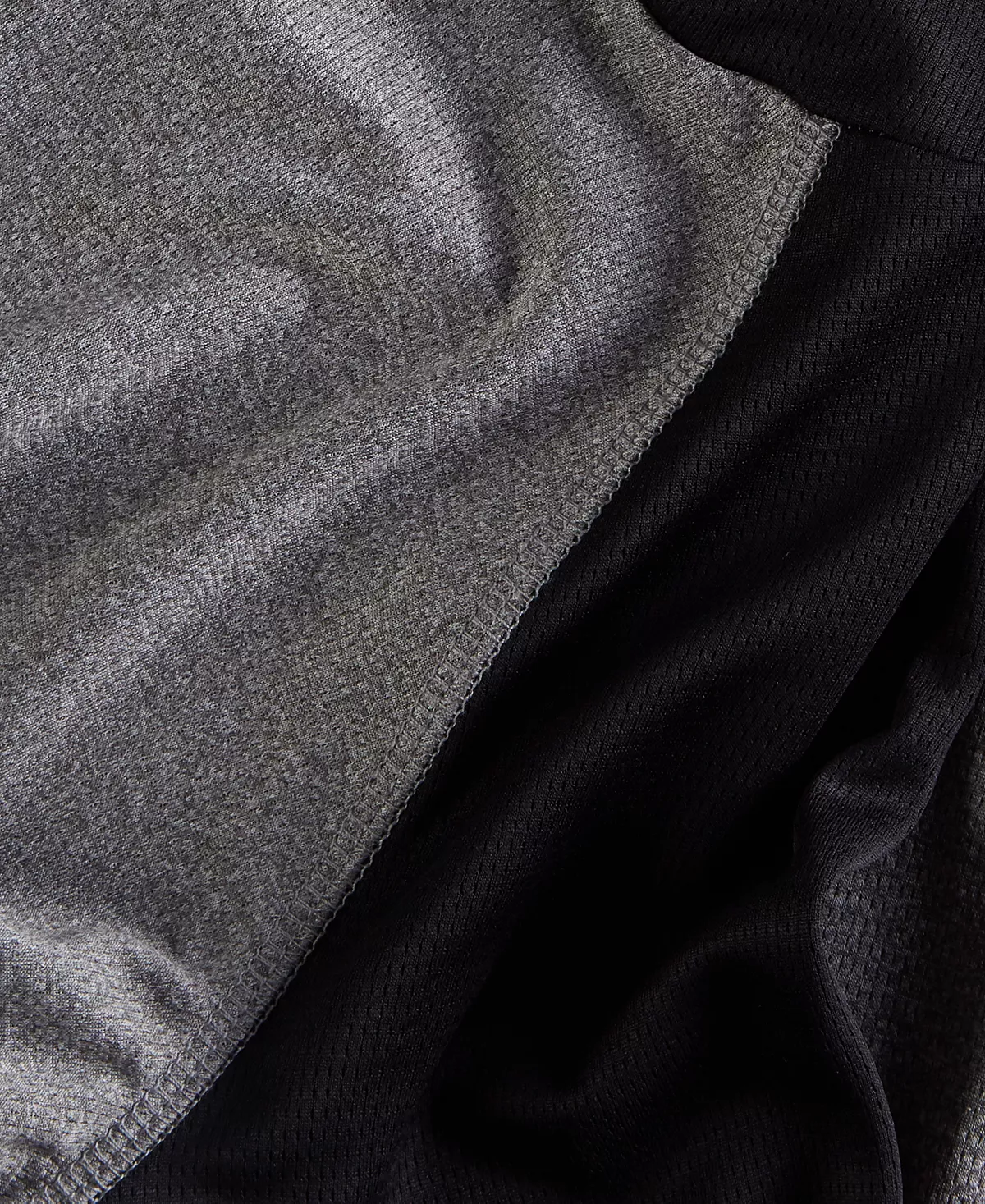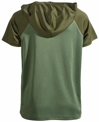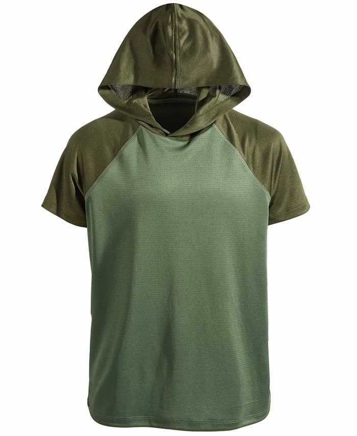 Give his sporty look a stylish boost with the cool colorblocking and cozy hood featured on this double-knit birdseye T-shirt from ID Ideology.
