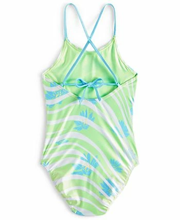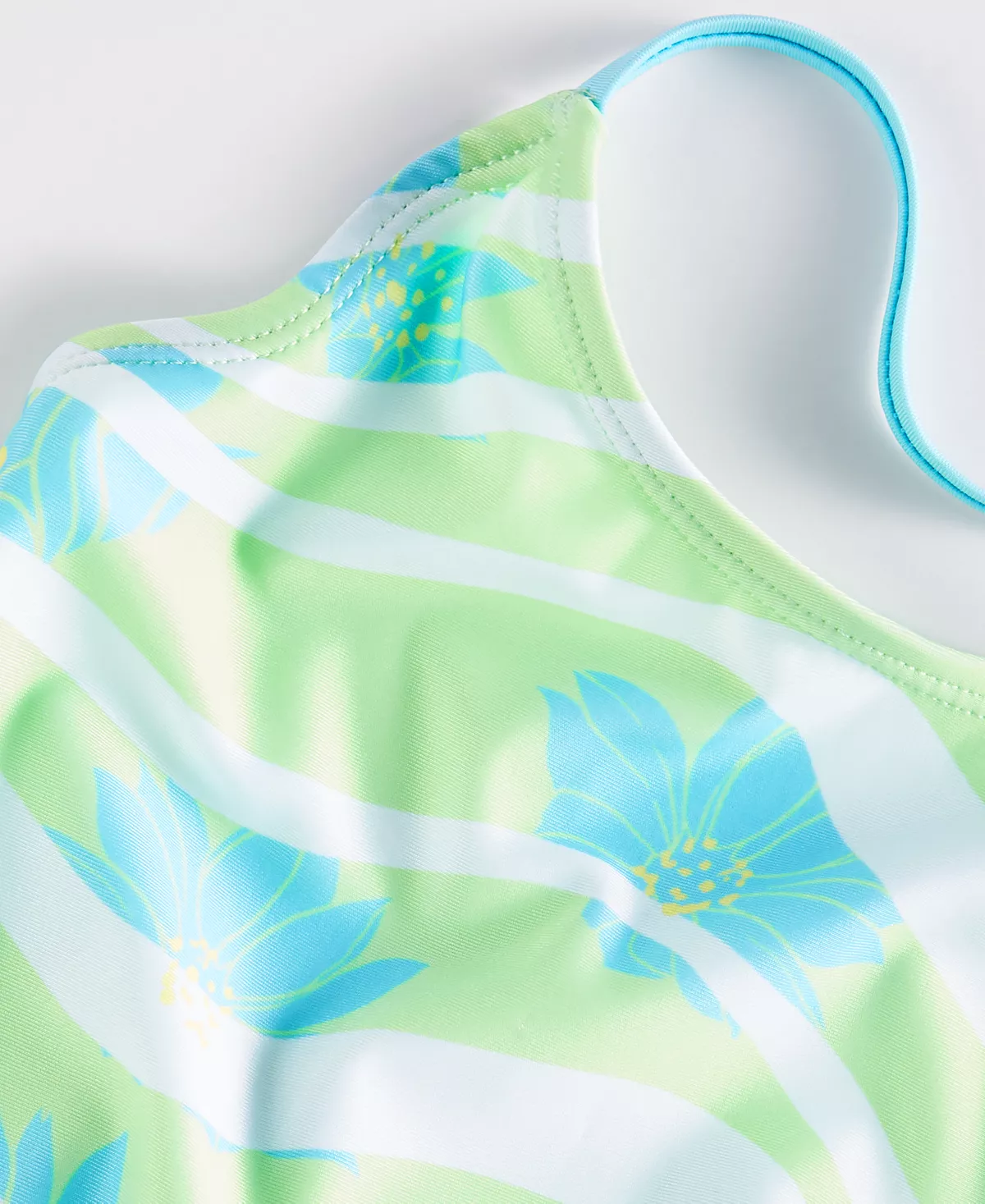 Perfect for playdates at the pool, this one-piece ID Ideology swimsuit features criss-cross straps and allover wavy floral print.