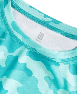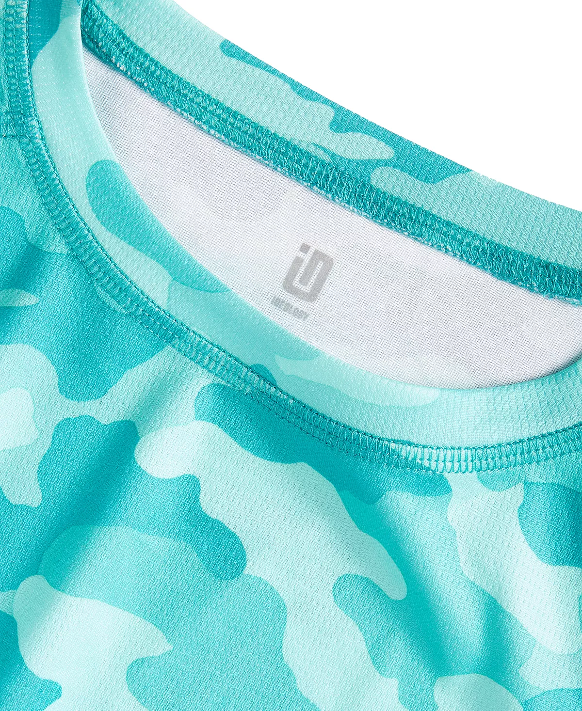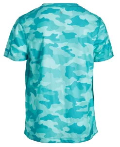 A colorful camo print patterns this classic crewneck with short sleeves from ID Ideology.