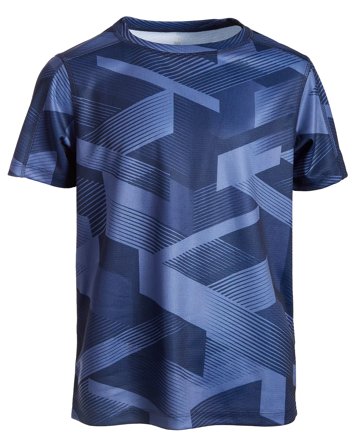 A cool geometric print patterns this classic crewneck with short sleeves from ID Ideology.