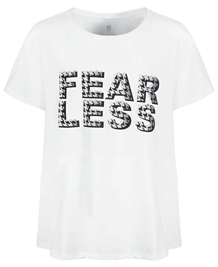 An inspiring graphic decorates the front of this casual and cute short-sleeve top from ID Ideology.