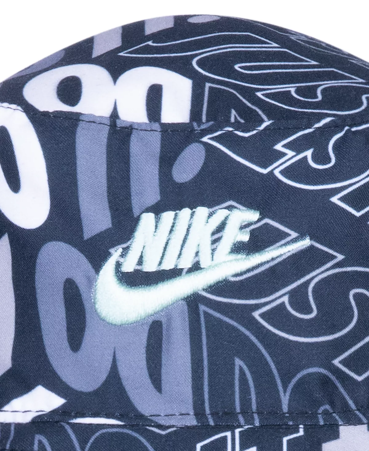 The Nike bucket hat delivers a 360 degree shade and features UPF 40+ fabric to shield covered areas from the sun. The chin strap features an easy hook-and-loop tape closure for a stay-put fit. A sweatband inside is made with comfortable cotton to help keep little ones dry.