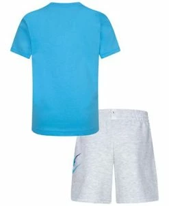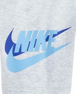 For a casual Nike look, this set includes a short-sleeved T-shirt and matching shorts. The T-shirt is made of a soft jersey that feels extra comfortable all day long, and the shorts feature an elastic waistband that stretches for the right fit.