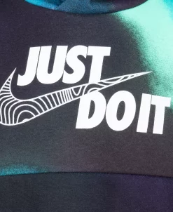 Kiddos can shine-literally, in the Nike sportswear illuminate fleece pullover hoodie is made of soft fleece in a roomy, comfy cut that makes it perfect for layering. It features a graphic Swoosh made that reflects light. Pair with the Nike sportswear illuminate pants for a coordinated look.