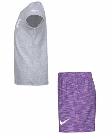Consisting of a soft jersey T-shirt and matching shorts, this Nike set is all about comfort. The T-shirt features a crew neck, short sleeves, and a standard fit for easy wear, while the shorts have a stretchy waistband that offers just the right fit.