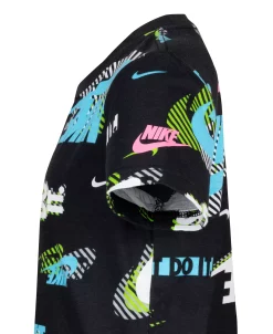 For kids that like to make a statement, this Nike T-shirt features a colorful all-over print that allows them to express themselves. The jersey fabric feels soft and comfortable, while the fit offers easy wear.