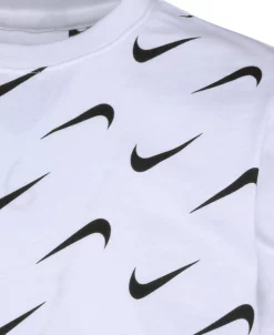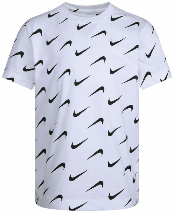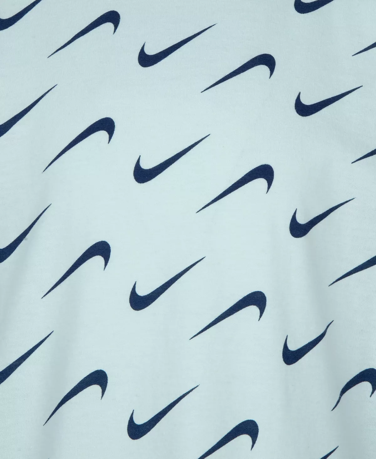 The Nike allover swoosh print T-shirt is a classic design which features a logo print on fabric kiddos can be comfy in.