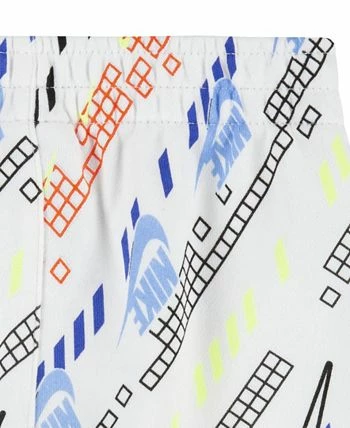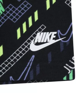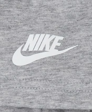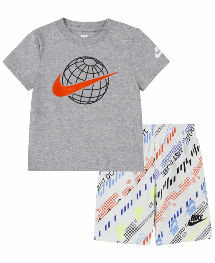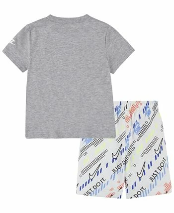 The Nike T-shirt and shorts set is a great choice for fun summertime adventures soft jersey T-shirt features short sleeves and a swoosh icon graphic at the chest. Shorts are made of lightweight French terry and feature a soft elastic waistband and an allover print that makes your kid stand out.