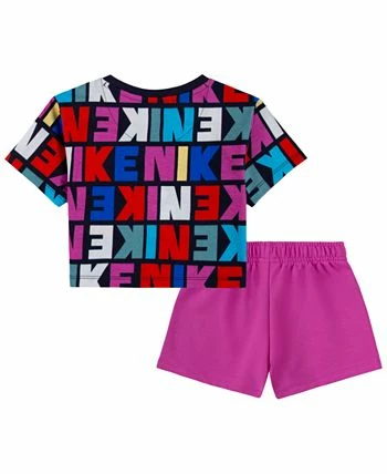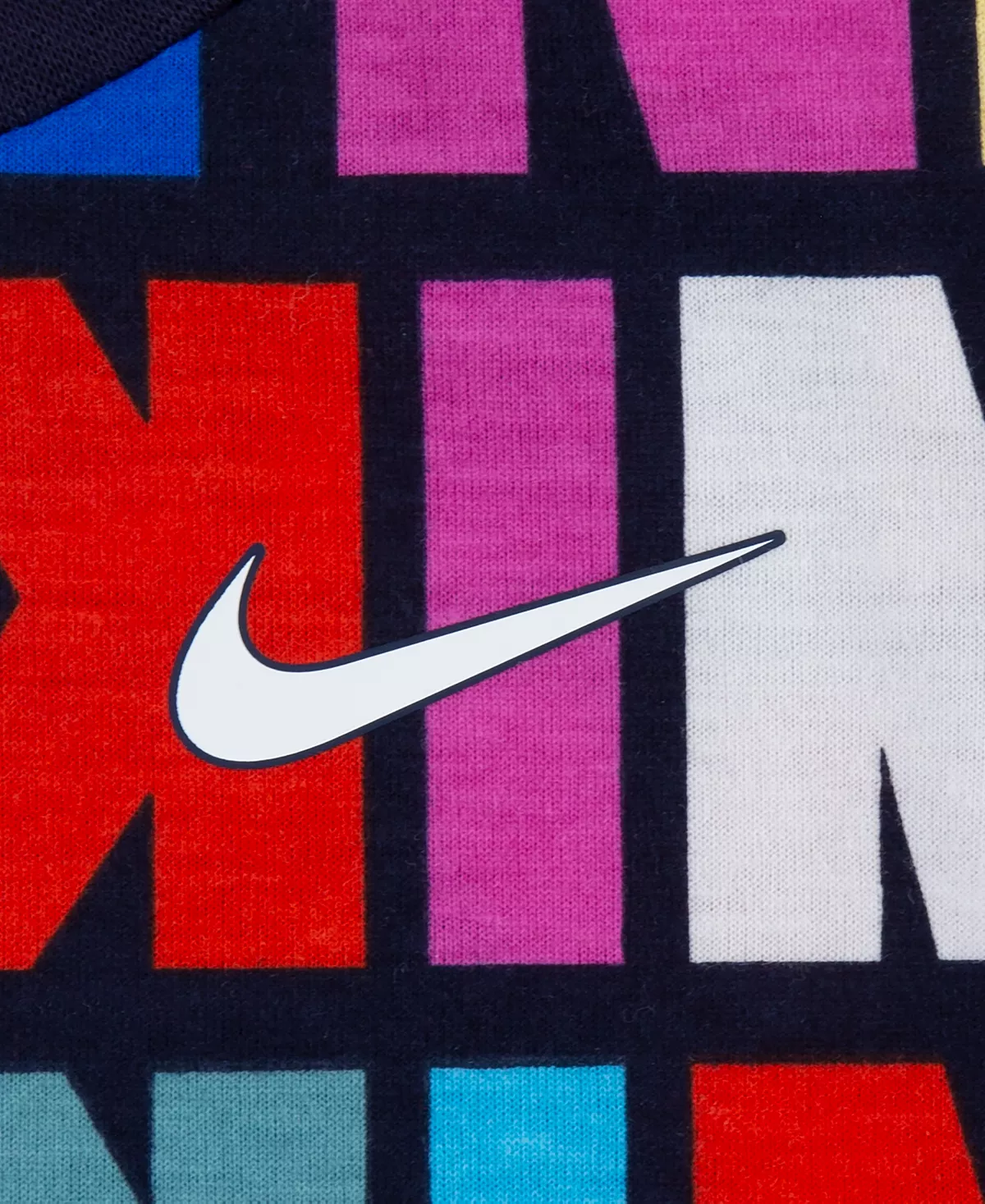 The Nike set is a comfy combo, perfect for any activity, no matter whether it’s school, a party, or a casual playtime. It includes a short-sleeves T-shirt with a boxy fit and all-over print and a pair of soft shorts.
