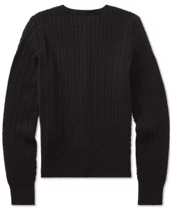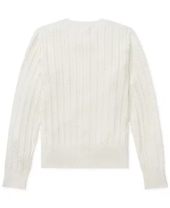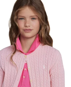 A pure Polo piece, this cardigan is cable-knit from lustrous mercerized cotton to keep her warm in signature style.