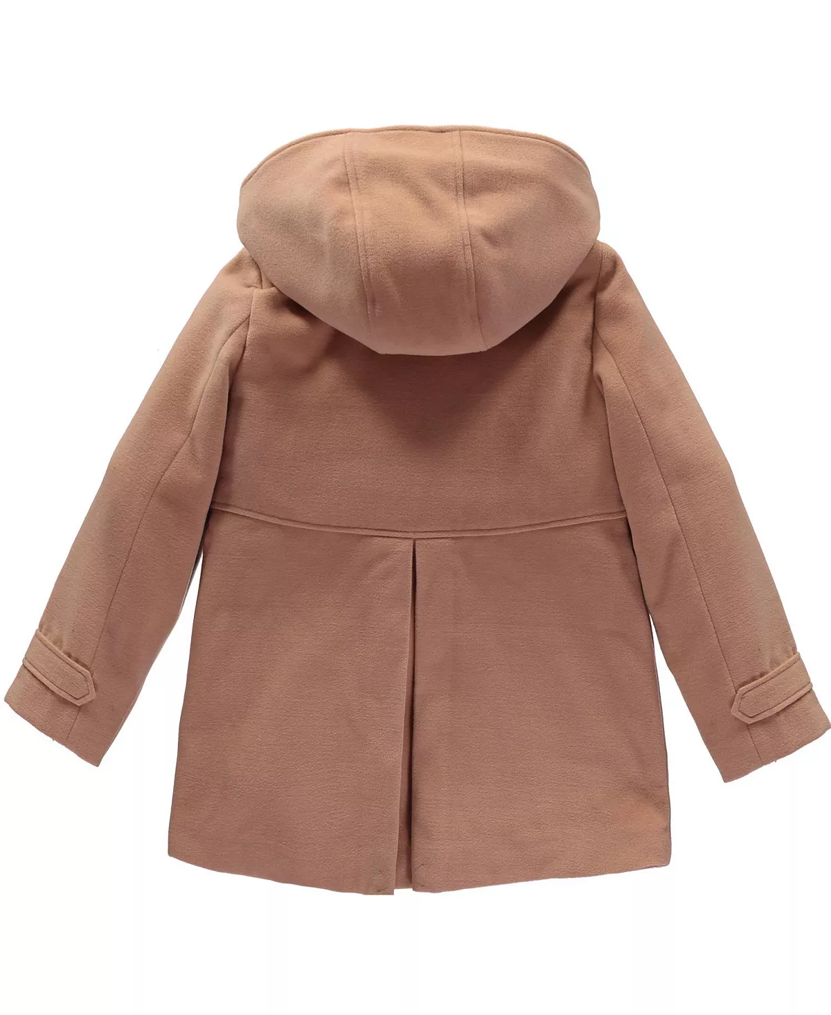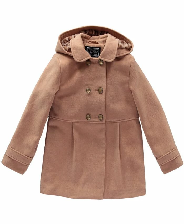 Solid faux wool car coat with leopard print faux wool lined hood.