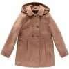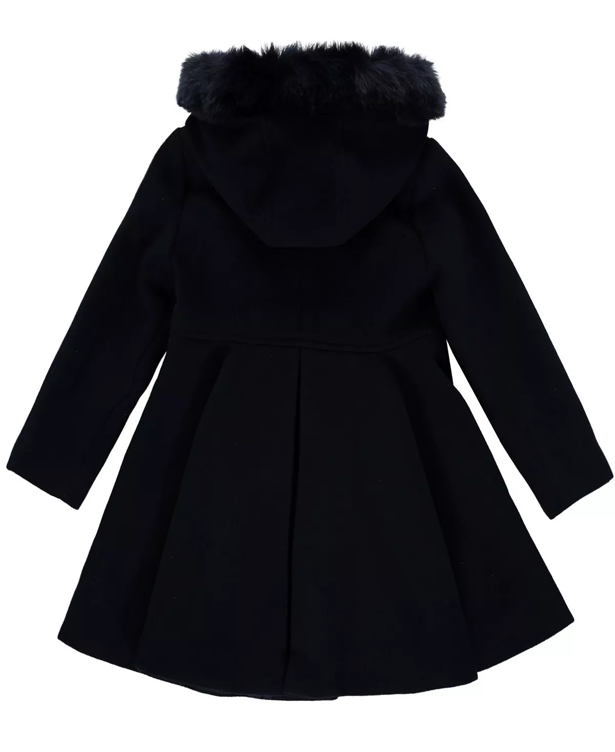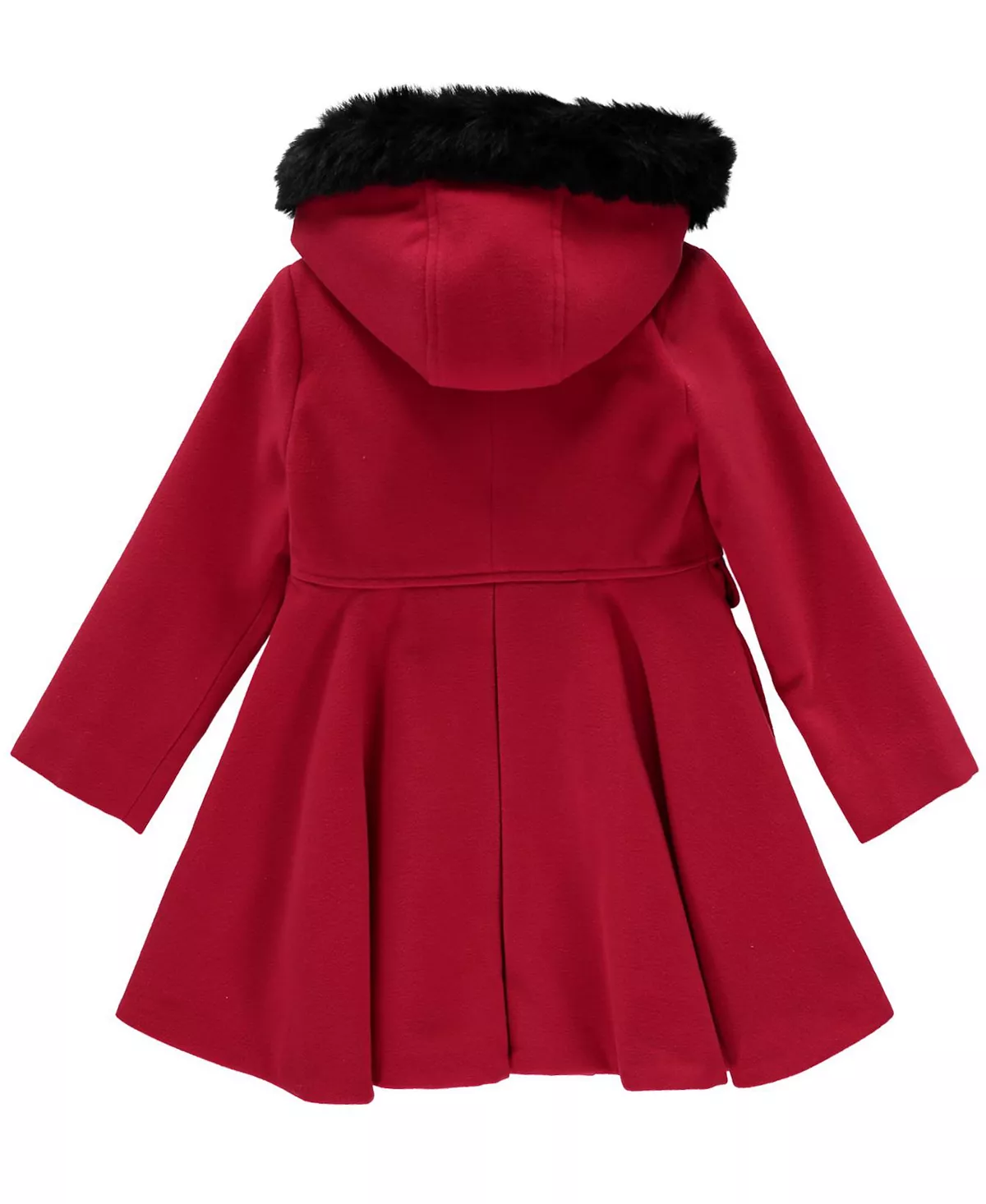 - Shell: polyester/viscose/spandex; lining: polyester; trim: faux fur
