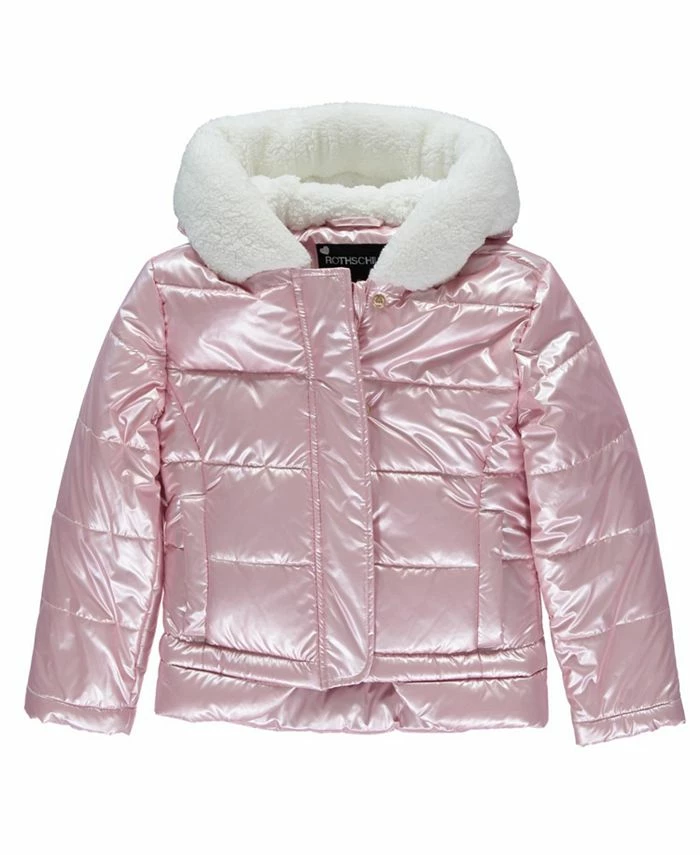 Pearlized metallic jacket with soft teddy Sherpa lined hood.