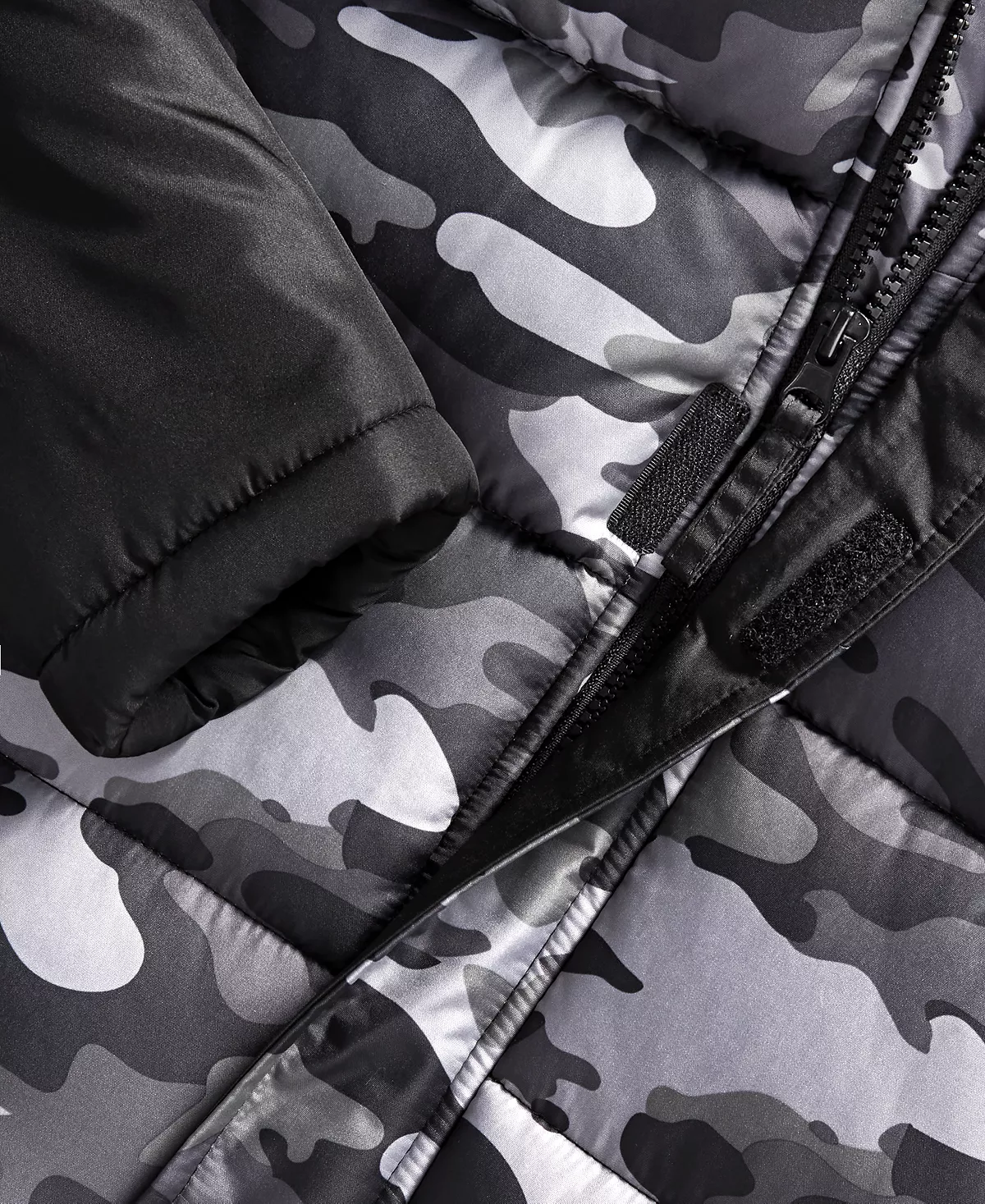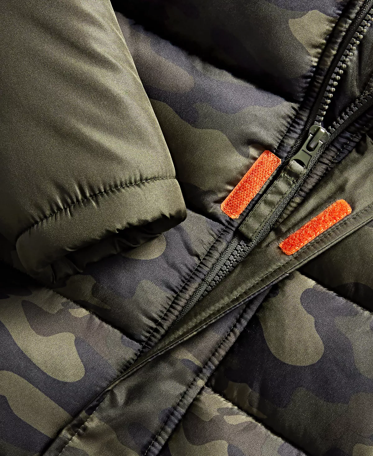 S Rothschild & CO designed this adventure-ready jacket to keep your little guy warm in any weather, designed with a hidden front-zip closure and camo print.