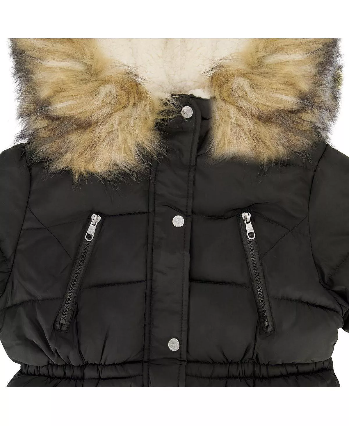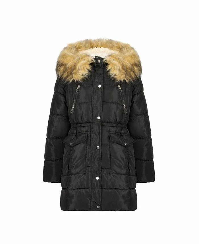 Beat the cold in style in this quilted mid-length puffer coat. Made with 100% polyester. This coats long design, quilted-construction, and partial faux fur lined hood will make it a winter essential. It features multiple pockets for storage and a detachable hood to protect your face and neck. Snap/Z