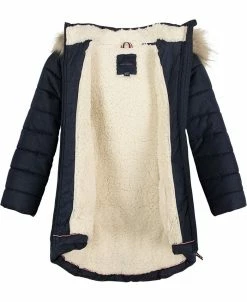 - Fully lined with sherpa fleece, storm cuffs, high-low hem, 26″ length