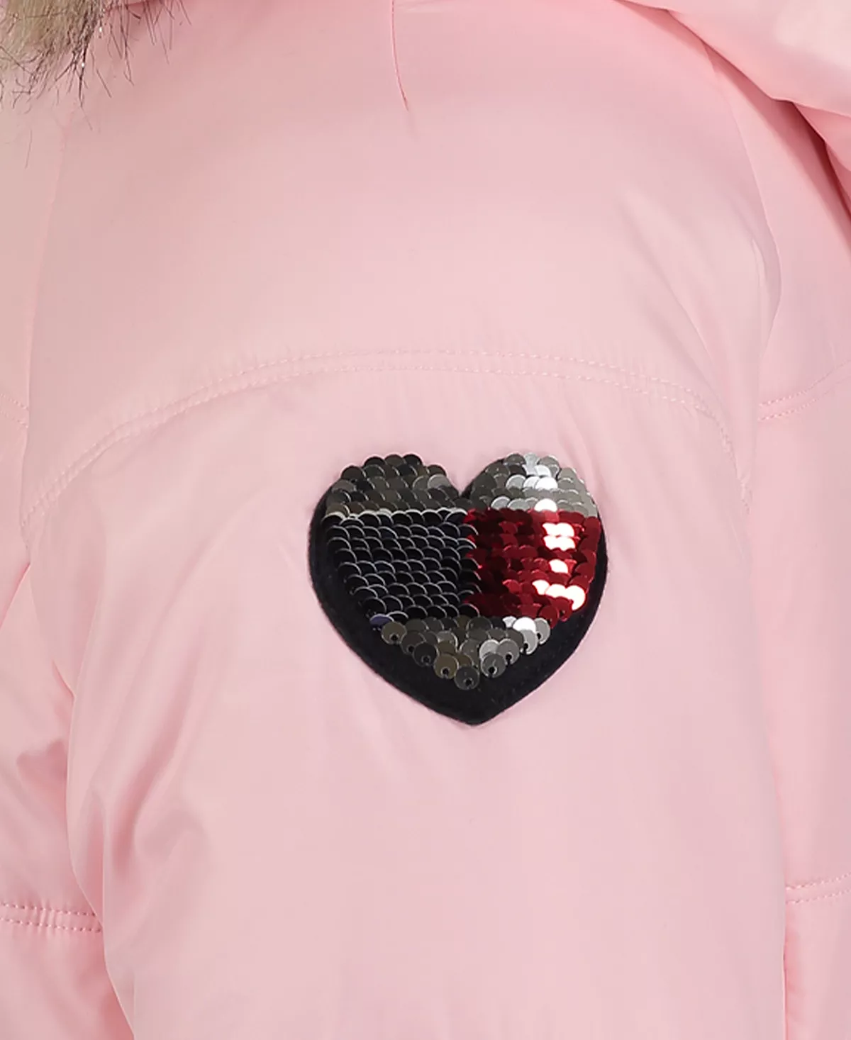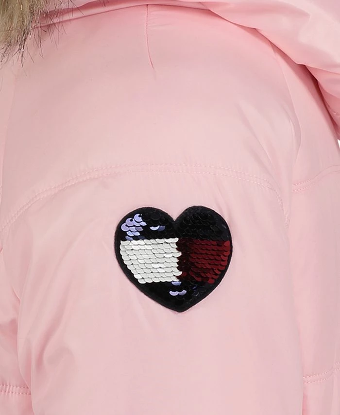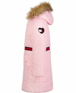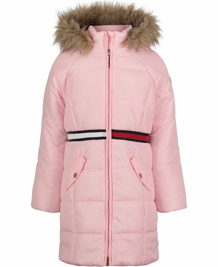 Signature details enhance the look of this long puffer jacket from Tommy Hilfiger, featuring a fluffy fleece lining to keep her toasty with sparkling accents like faux fur trim to keep her stylish.